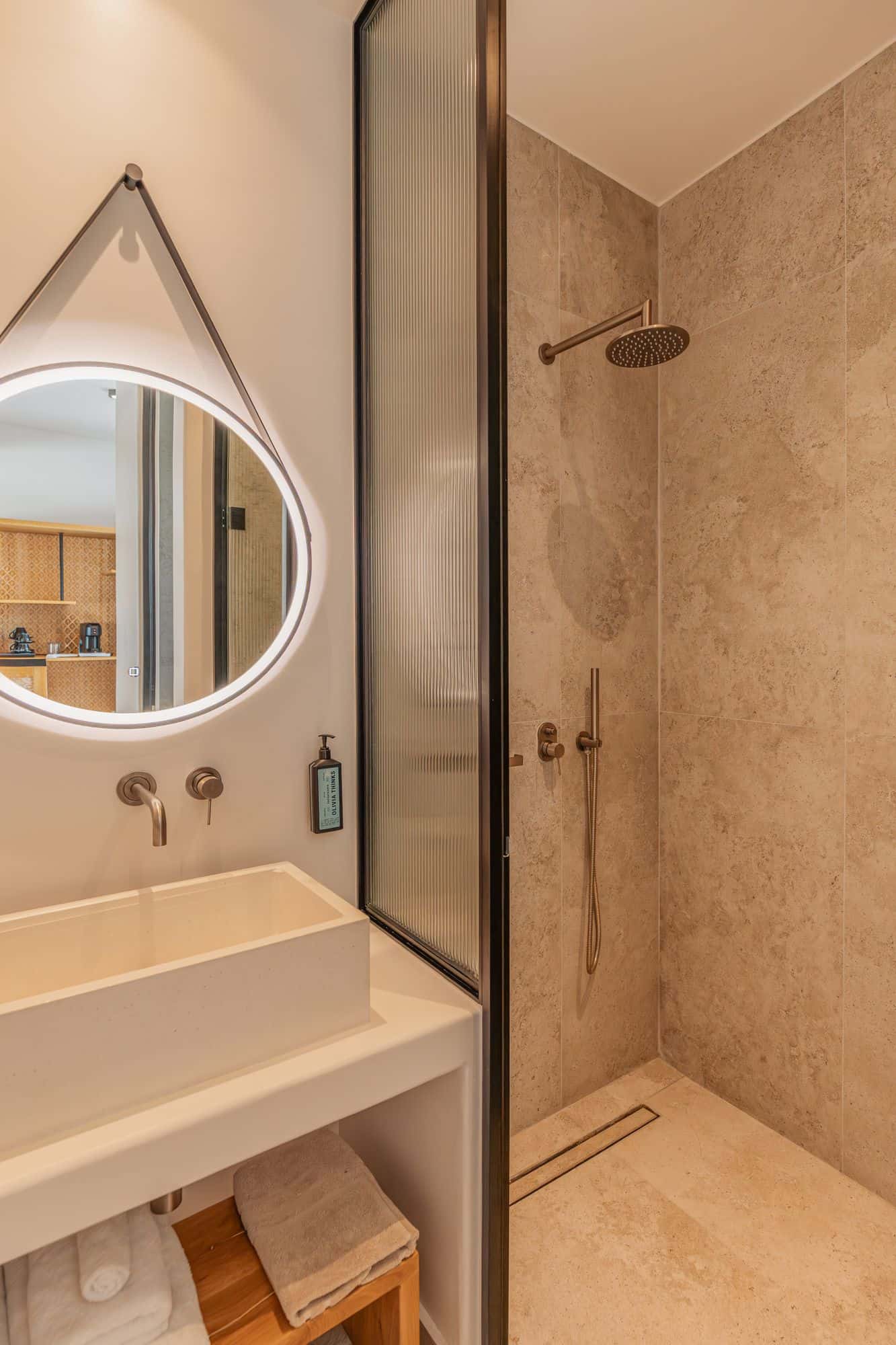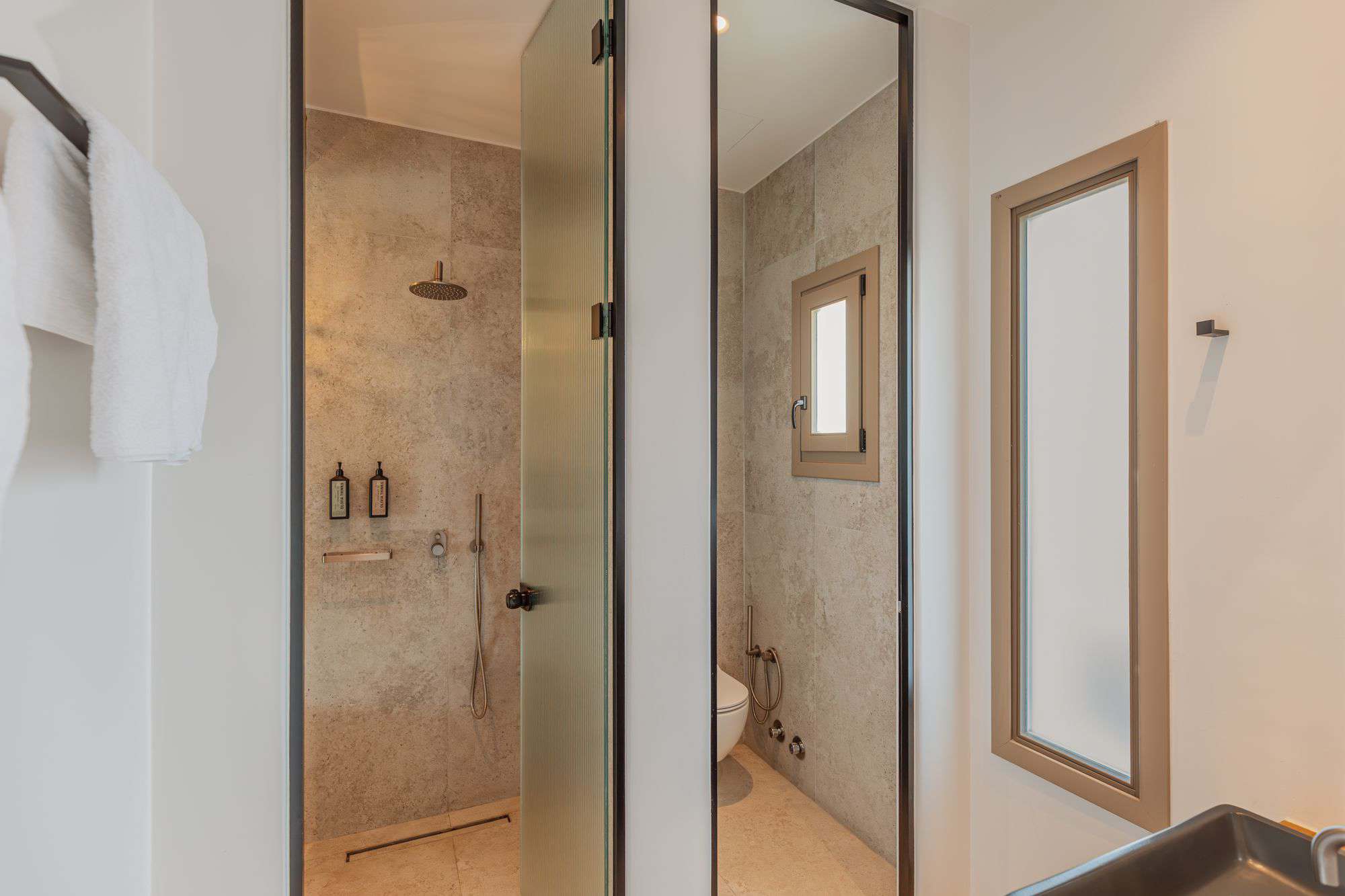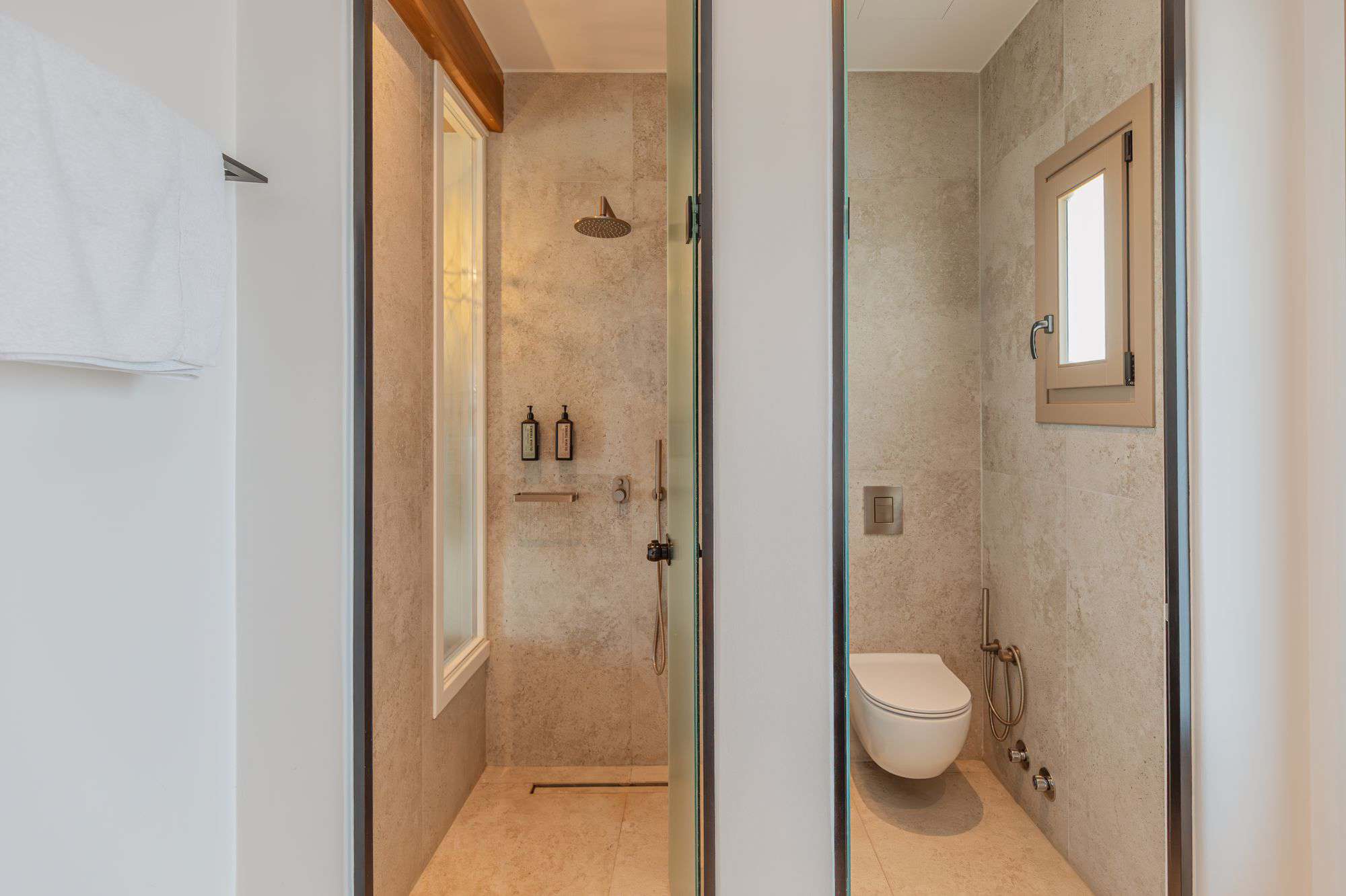 Inside, the textures are warm, the palette soft, the layout thoughtfully minimal. A queen-size bed, a custom bathroom with rain shower, and soft details elevate the everyday into a rare sense of presence. This is not just a suite — it’s a retreat sculpted by nature, calm and care.